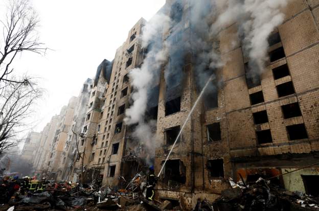 Как сообщает мэр города Виталий Кличко, пострадавшие были госпитализированы из многоэтажного жилого дома в Соломенском районе, где из-за ракетного удара произошло возгорание.