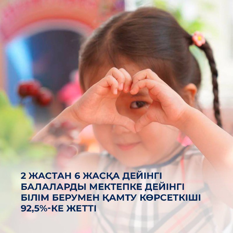 📊 2 жастан 6 жасқа дейінгі балаларды мектепке дейінгі білім берумен қамту көрсеткіші 92,5%-ке жетті