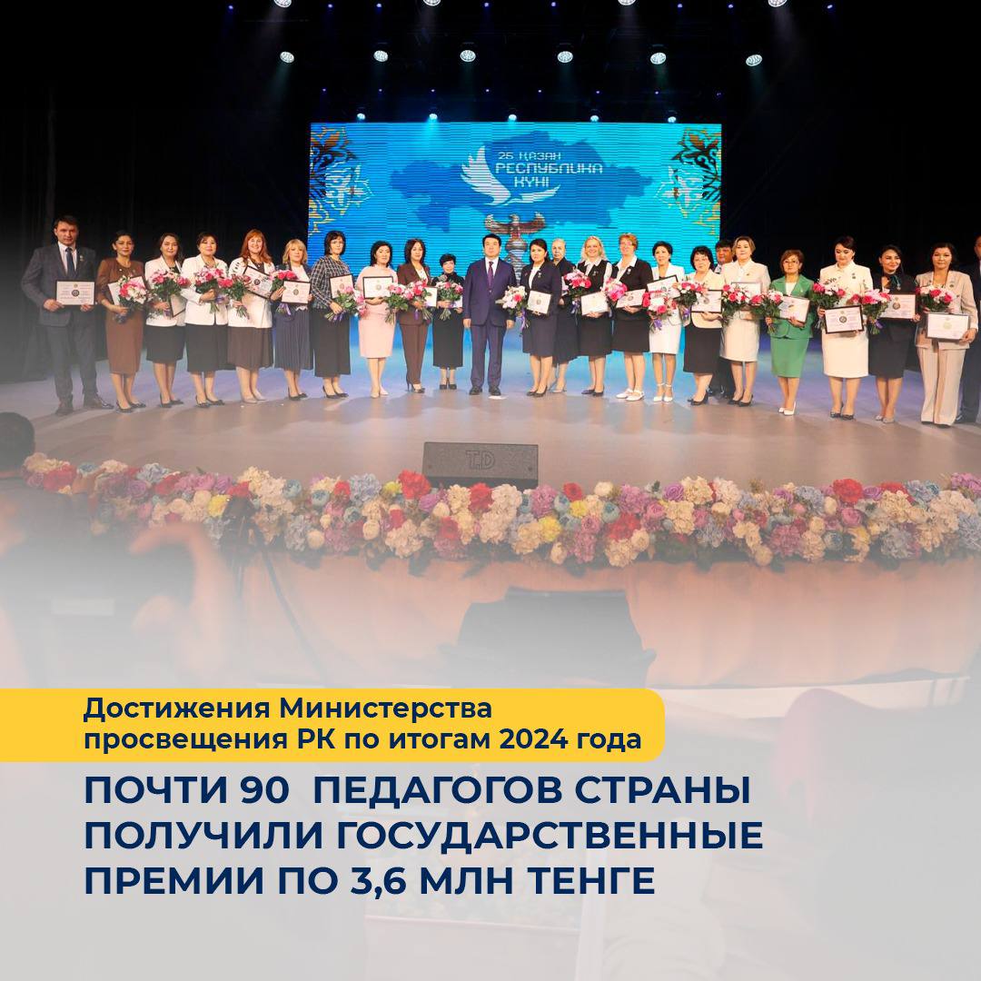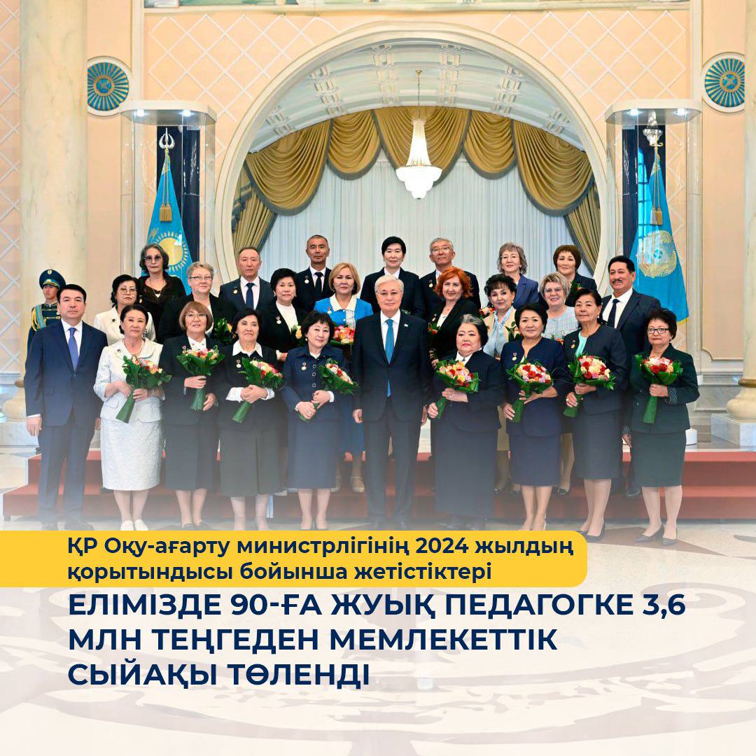 💰 Елімізде 90-ға жуық педагогке 3,6 млн теңгеден мемлекеттік сыйақы төленді