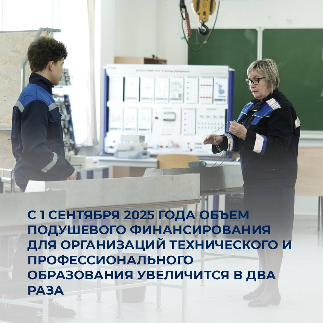 ⚡️ С 1 сентября 2025 года объем подушевого финансирования для организаций технического и профессионального образования увеличится в два раза
