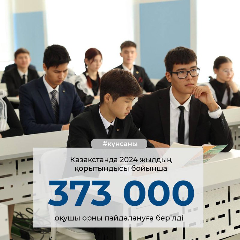 🎒 2024 жылдың қорытындысы бойынша елімізде 373 мың оқушы орнына арналған 257 мектептің құрылысы аяқталды.