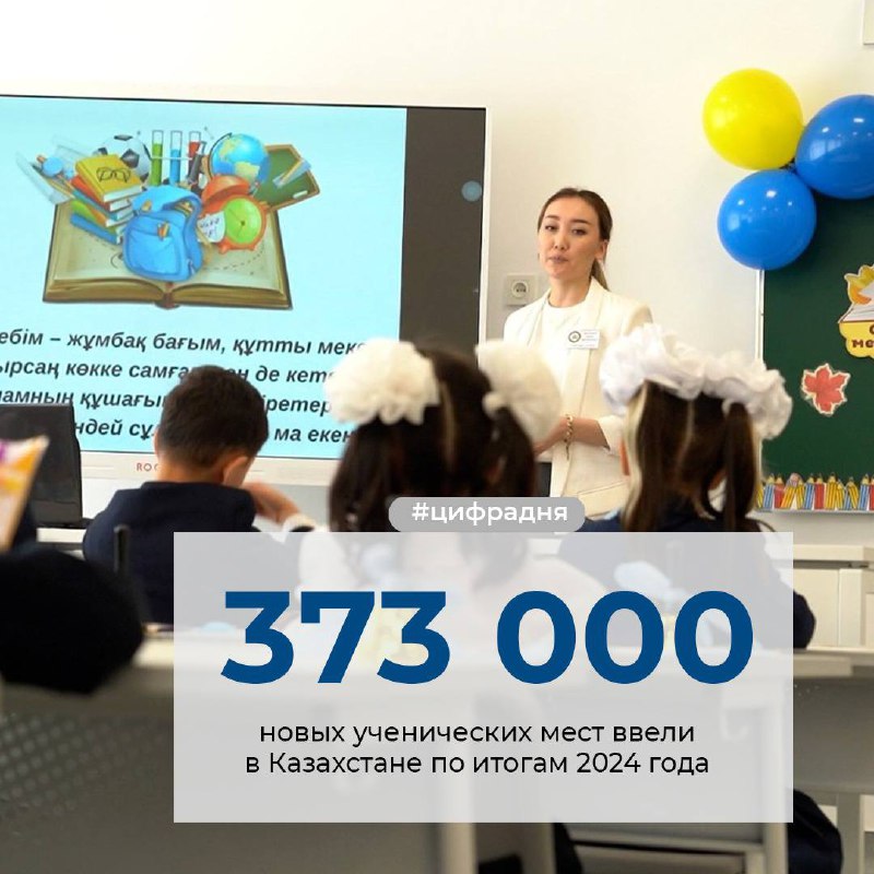 🎒 2024 жылдың қорытындысы бойынша елімізде 373 мың оқушы орнына арналған 257 мектептің құрылысы аяқталды.