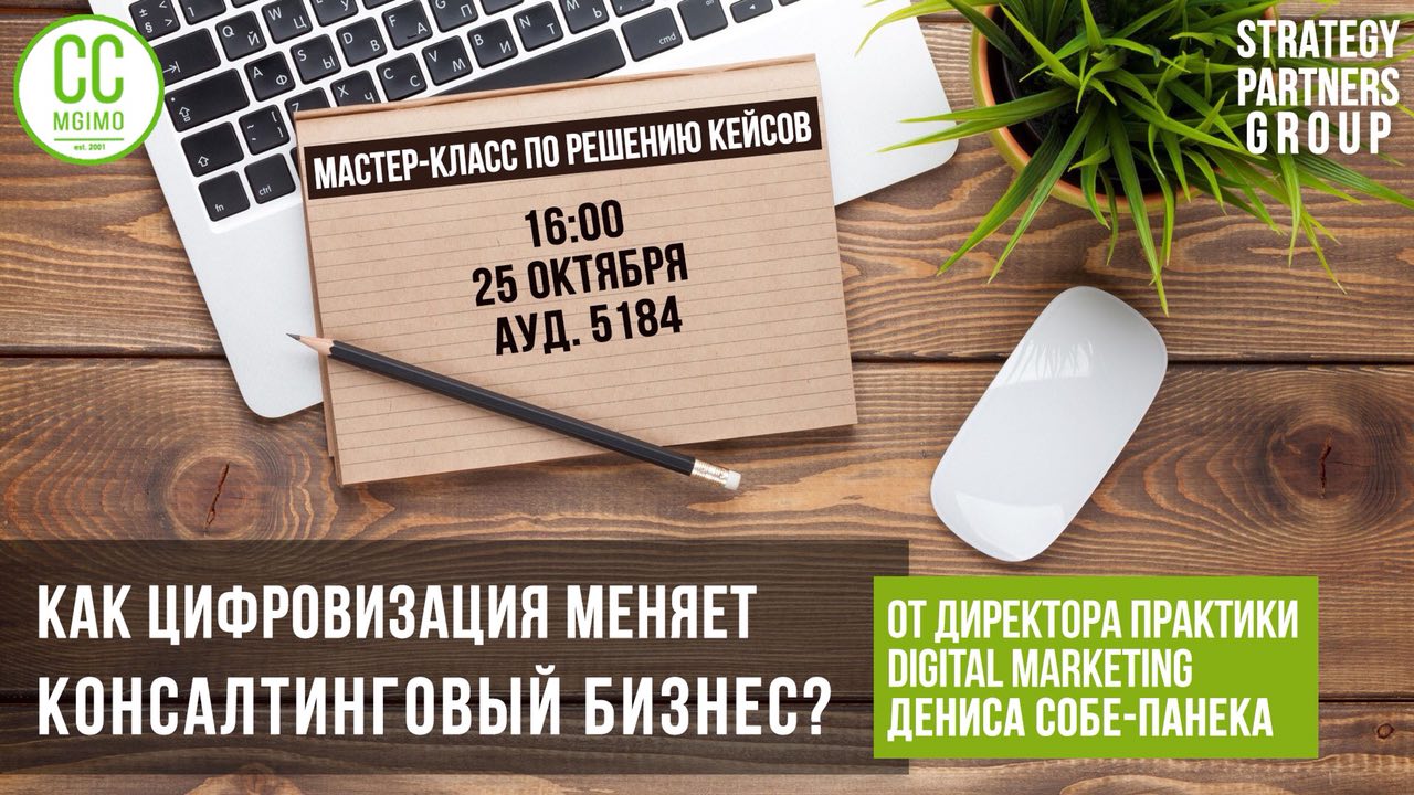 Напоминаем, что уже 25 октября в рамках Кейс-клуба состоится встреча с представителями консалтинговой компании Strategy Partners Group, в рамках которой вы узнаете о том, как цифровизация меняет консалтинговый бизнес.