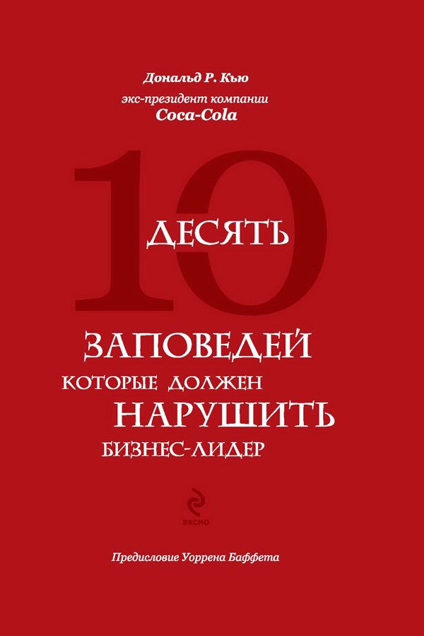 Хотим обратить твоё внимание на книгу, написанную экс-президентом компании Coca-Cola Дональдом Р. Кью, 10 заповедей, которые должен нарушить бизнес-лидер. Дональд Р. Кью в разные годы был членом совета директоров целого ряда известных фирм, в том числе McDonald's, The Washington Post Company, Home Depot, H.J. Heinz Company и Университета Нотр-Дам. Впечатляет, не правда ли?