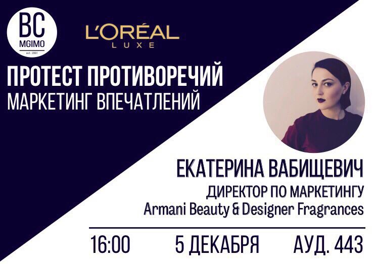 💫авторская лекция Екатерины Вабищевич – директора по маркетингу Armani Beauty&Designer Fragrances, L`Oreal Luxe. Екатерина рассказала о том, как происходит сегментация аудитории и как будущим маркетологам найти «своих потребителей»;
