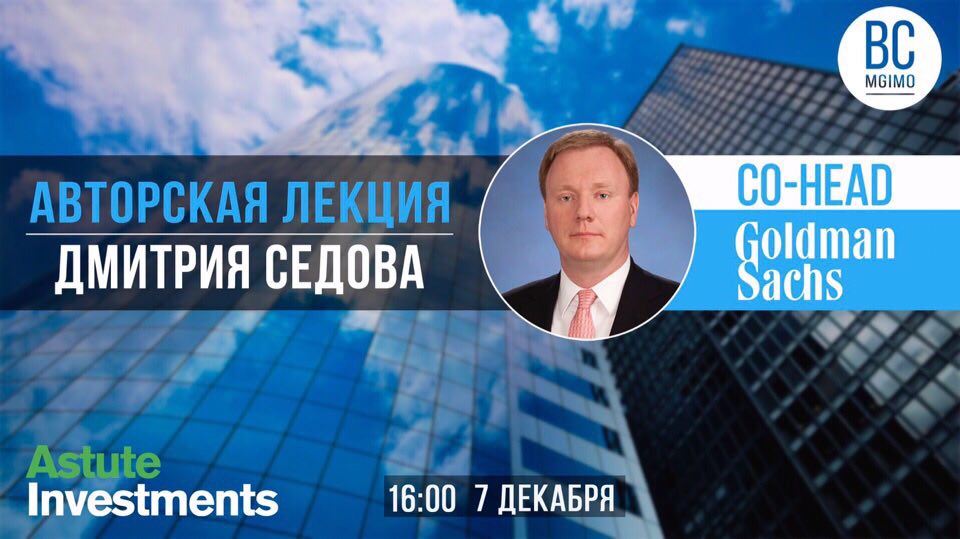 7 декабря в 16:00 в 9 зале благодаря нашим друзьям из Astute Investments состоится авторская лекция Дмитрия Седова – председателя совета директоров Goldman Sachs Russia.
