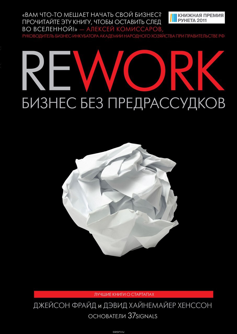 Сегодня мы советуем обратить внимание на книгу Rework. Бизнес без предрассудков, авторы Джейсон Фрайд и Дэвид Хайнемайер Хенссон.