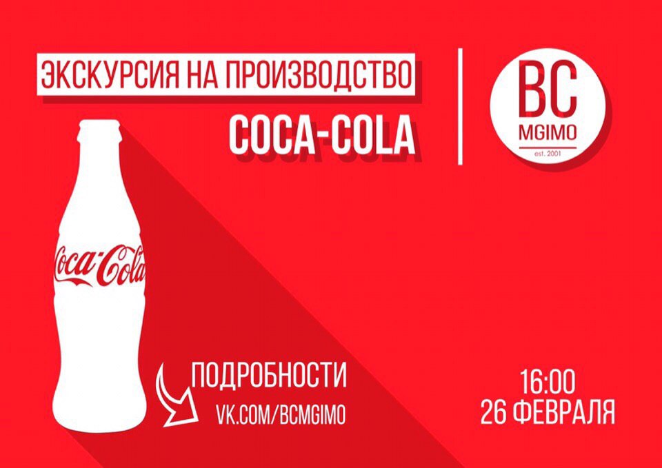Друзья, Бизнес-клуб МГИМО приглашает на экскурсию в компанию, знакомую каждому из нас с детства - в Coca-Cola🥤