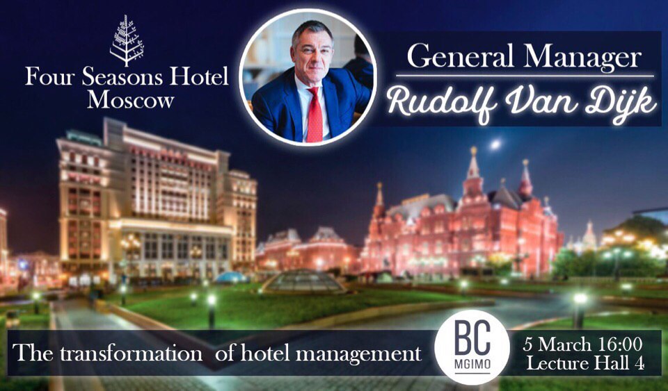 ♦️Уже завтра в 16:00 в 4 зале состоится встреча студентов с Генеральным управляющим Four Seasons Hotel Moscow – Рудольфом ван Дайком♦️