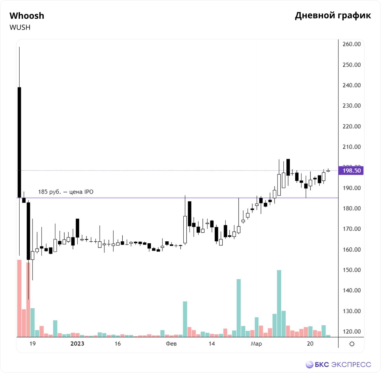 Что касается самих акций, то после IPO котировки длительное время двигались в боковом направление. В начале марта акции преодолели психологическую отметку в 185 руб. — цена IPO и в моменте держатся выше нее.