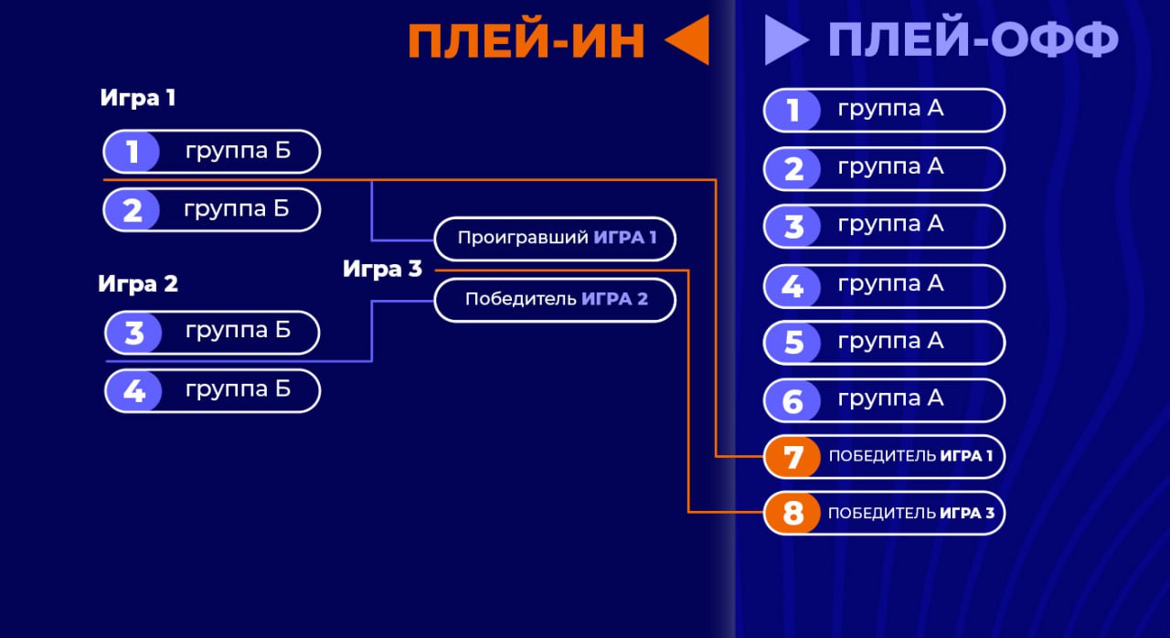 ▫️ 4 лучшие команды группы «Б» по итогам второго этапа сразятся в новом для Лиги этапе чемпионата - плей-ин - за 2 оставшихся места в плей-офф.