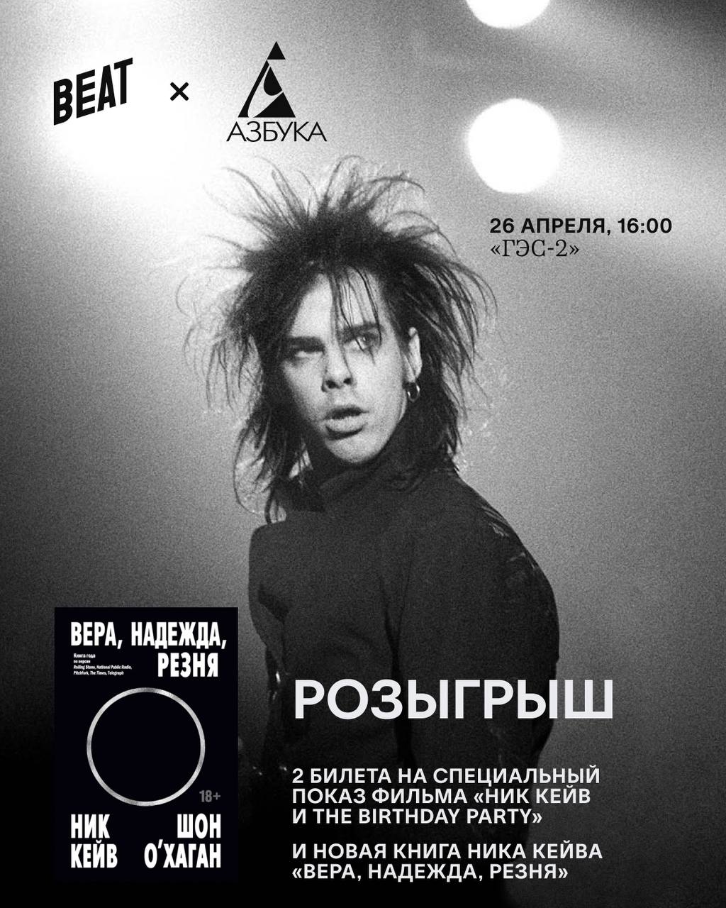 Победитель получит 2 билета на специальный показ фильма «Ник Кейв и The Birthday Party» про первые годы творческого становления Кейва, который пройдет 26 апреля в 16:00 в «ГЭС-2».