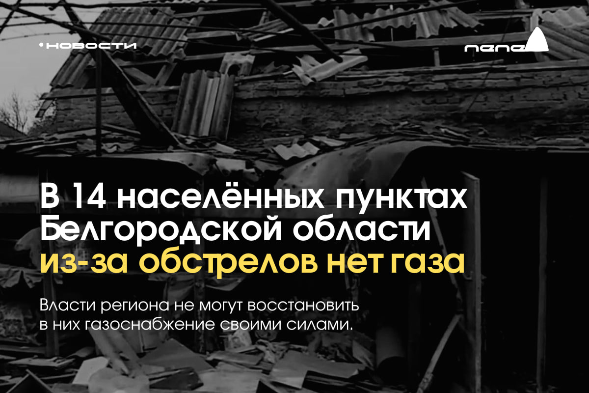 14 населённых пунктов Белгородской области отключены от газа и тепла из-за обстрелов.