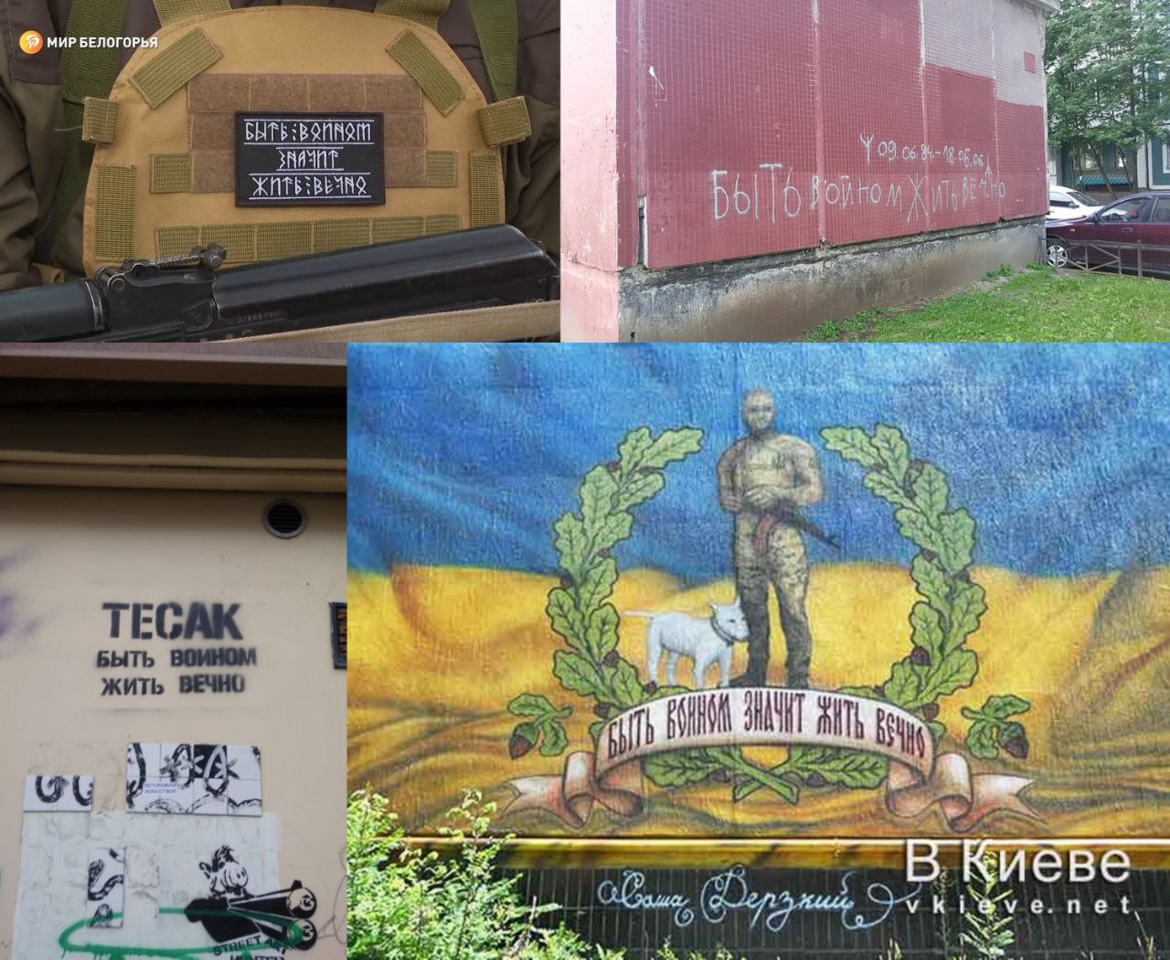 То, что в написании используются именно руны — неслучайно. Сейчас такими шевронами завален OZON, «Вайлдберис» и другие маркетплейсы, а до начала войны эта фраза и её руническое написание использовались неонацистами, националистами и футбольным фанатами, чтобы подчеркнуть, что человек погиб с честью, и его дело будет жить даже после его смерти.