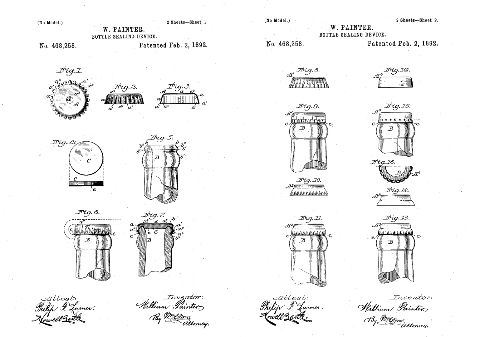 Все началось 2 февраля 1892 года, когда из патентного бюро Соединенных Штатов Америки вышел 54-летний мужчина по имени Уильям. В руке у него был документ за номером 468258 — бумага, получение которой он с нетерпением ждал более трех лет. В тексте документа говорилось о том, что он, Уильям Пейнтер из города Балтимор, штат Мериленд, является изобретателем совершенно нового полезного усовершенствования в области укупоривания бутылок — «металлических герметизирующих колпачков, обладающих определенными оригинальными характеристиками, благодаря которым эти колпачки настолько высокоэффективны и недороги, что могут быть немедленно выброшены сразу после однократного применения, даже в случае отсутствия повреждений».