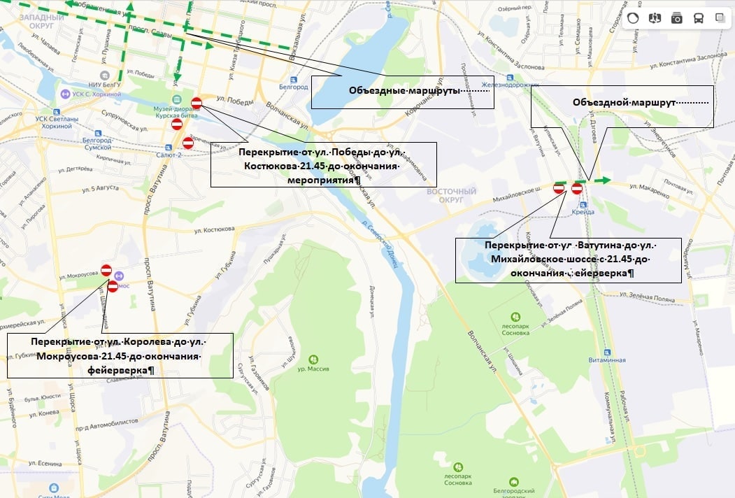Начало в 22:00, мэр попросил не собираться группами, перекрытия движений — на картинке.