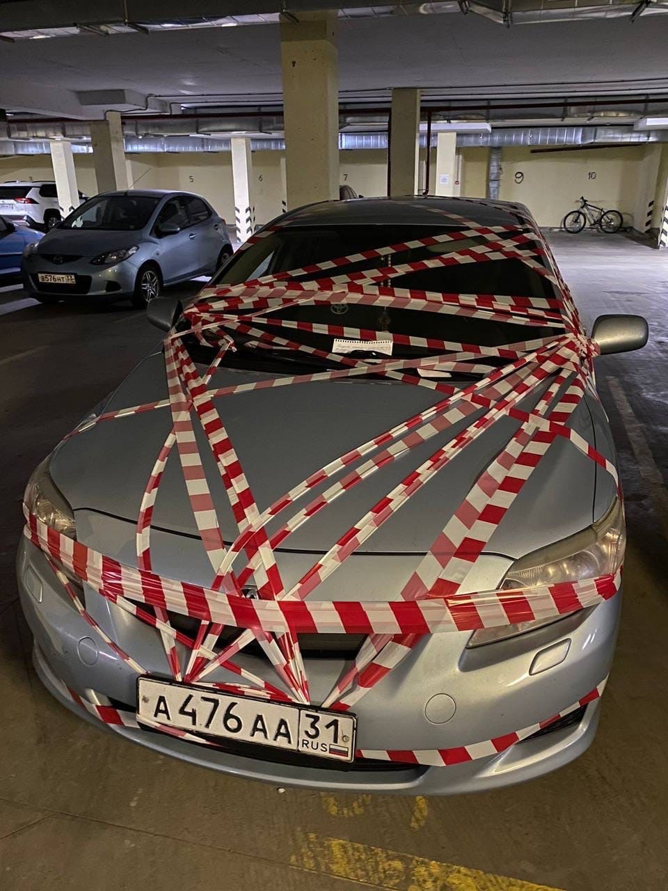 Сначала его вежливо просили убрать машину в чате ЖК и оставили записку, пишет «Белгород — это интересно». Но водитель не отреагировал и владелец места применил радикальные меры🤬