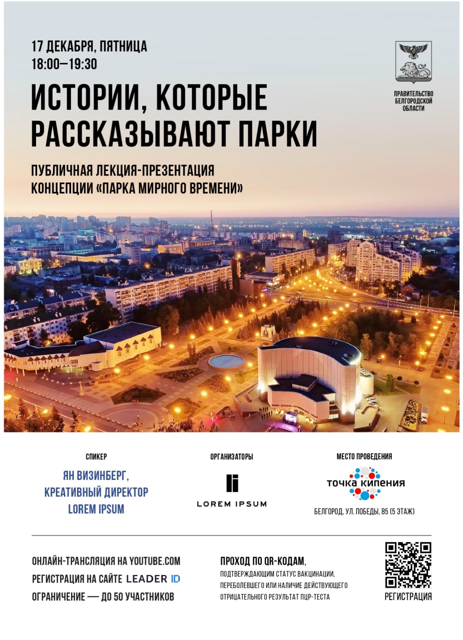 Из-за ковидных ограничений внутри может быть всего 50 человек, из которых 10 — это команда «Белгород №1», наши внештатные авторы и партнёры. Чтобы попасть в список оставшихся 40, заполните несложную анкету, оставьте телеграм или телефон, чтобы мы прислали вам точное время и место: