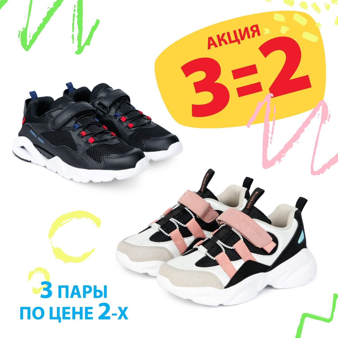 Супер акция 3=2 на всю обувь в «Бубль-Гум»!