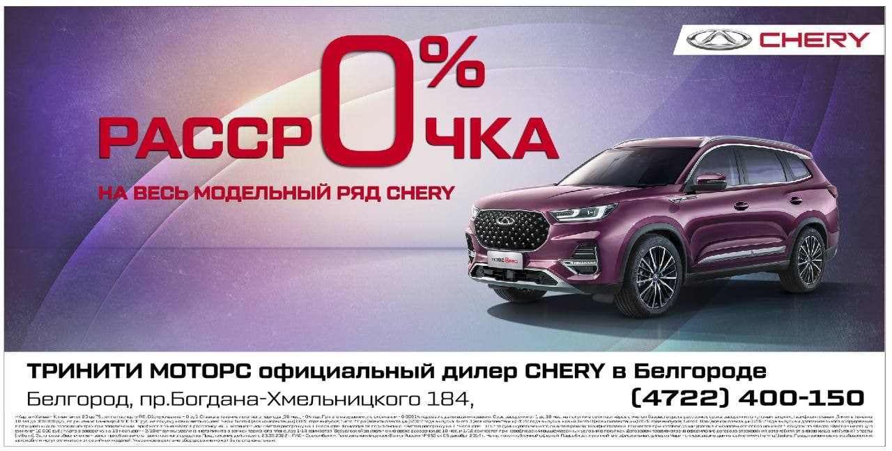 «CHERY Тринити Моторс» — официальный дилер автомобилей CHERY в Белгородской области — предлагает: