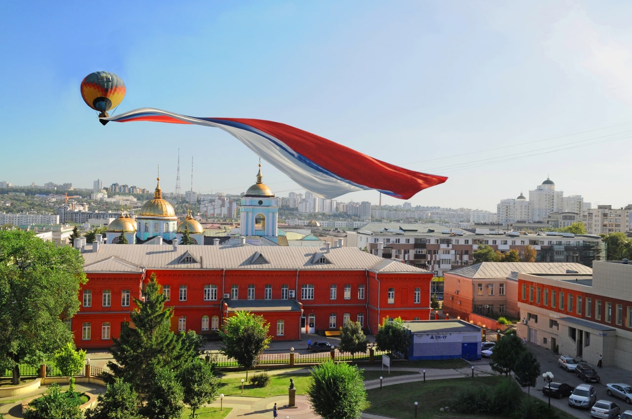 Флаг поднимут в небо на аэростате с Музейной площади в 17:00 — если будет позволять погода. Также цветами триколора будет подсвечена телевышка и «Белгород Арена».