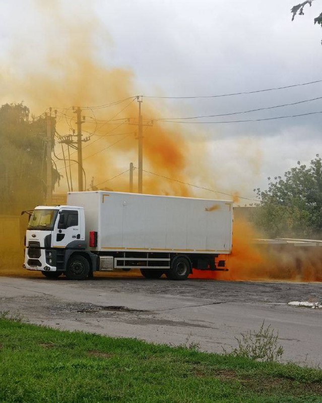 На Константина Заслонова в районе дома №193 произошла утечка азотной кислоты из грузовой машины.