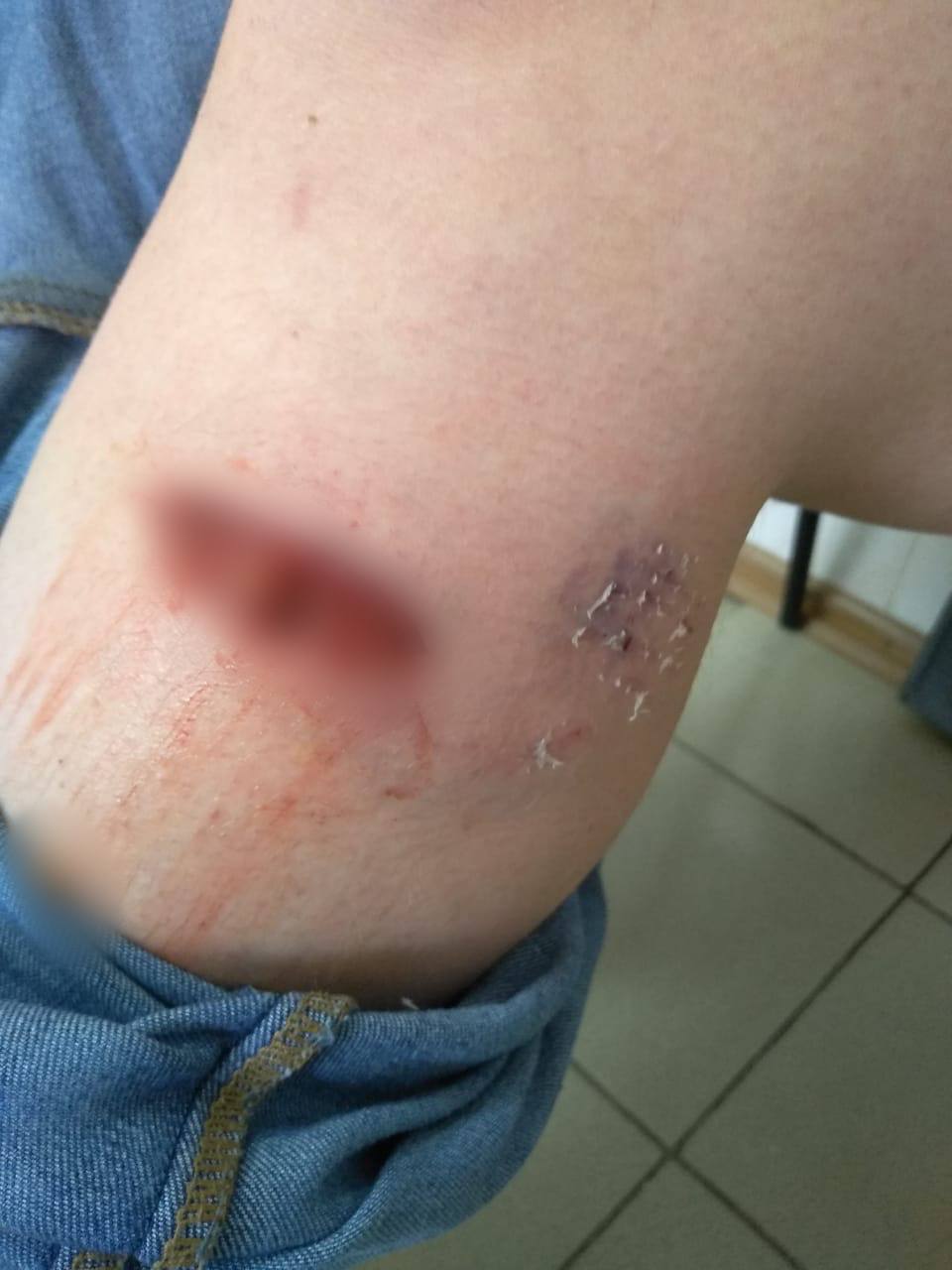 Псина разорвала ей всю одежду и рассекла ногу до мяса (фото ниже). Спустя какое-то время хозяин загнал собаку домой, а пострадавшую забрала мама в больницу.