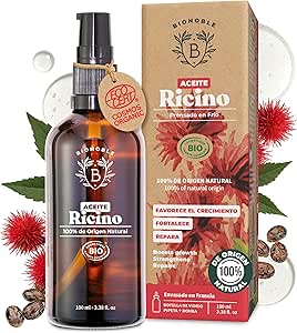 Producto: BIONOBLE Aceite de Ricino Organico, Prensado en Frío, Sin Hexano - Pestañas, Cabello, Cejas - Vegan Castor Oil - Aceite de Ricino 100 Puro y Natural - Botella de Vidrio, Pipeta, Bomba - 100ml