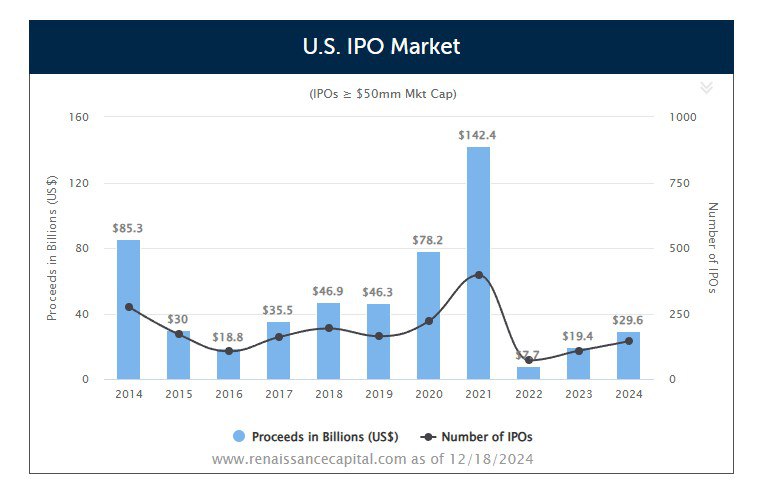 Компания успешно провела IPO по $71, открылись по $100. На частном рынке на пике 2021 года цена раунда Series G составляла $119 за акцию. Рынок первичных размещений оживился, и я думаю в 2025 нас ждет много интересных компаний.