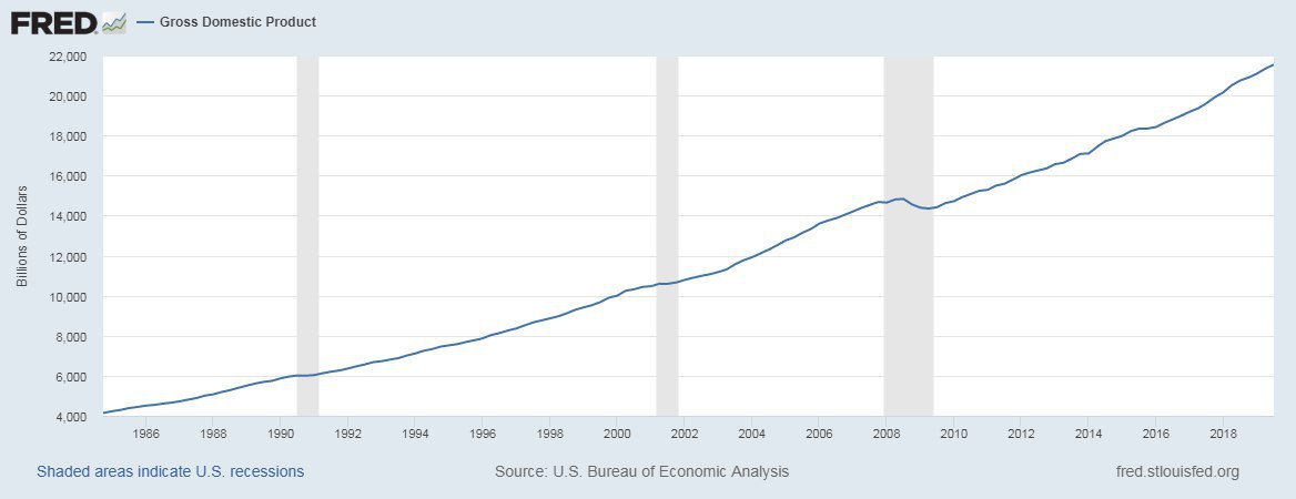 В предыдущем посте я поделился своими мыслями и прогнозами на следующий год по рынку стартапов в США. Сегодня расскажу про макро картину, что происходит в американской экономике и ждать ли рецессию в 2020 году. Постараюсь сделать это максимально понятно.