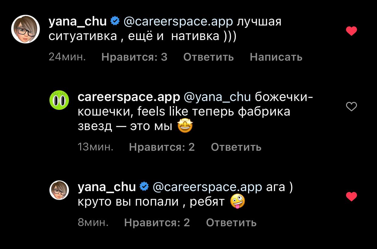 Инфаркт: инстаграм-аккаунт careerspace комментит Яна Чурикова.