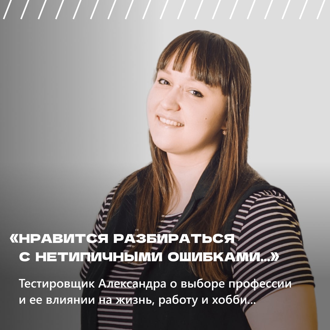 Сегодня мы взяли интервью у Александры, специалиста отдела тестирования. Она расскажет о том, как оказалась в этой сфере, и в чем заключается ее работа.