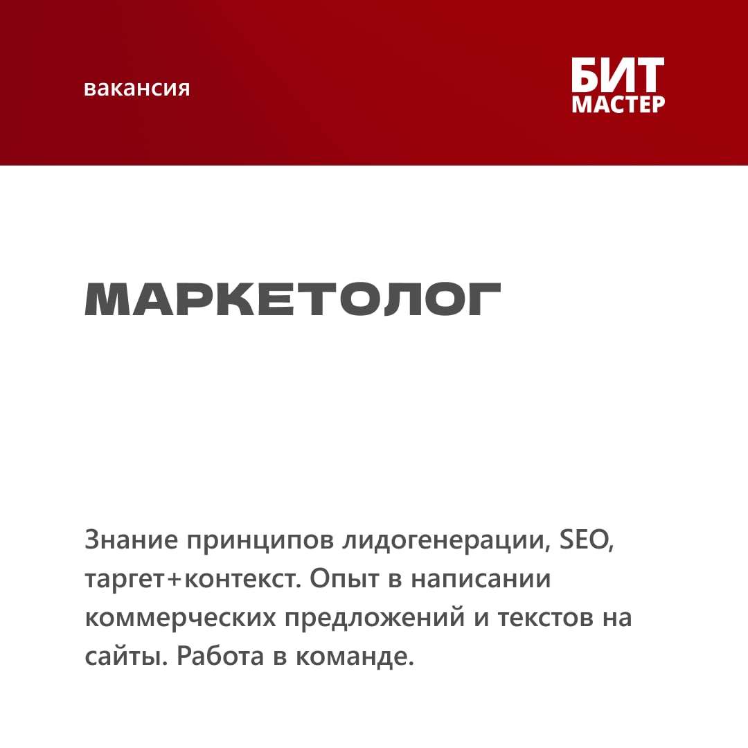 🔥 Attention! БИТ «Мастер» ищет в команду востребованных специалистов!