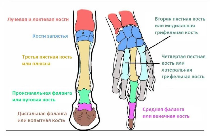 Копыто у непарнокопытных (лошади, ослики и зебры) — это средний палец. А то, что нам кажется в ноге лошади коленом, повернутым назад, это пятки.
