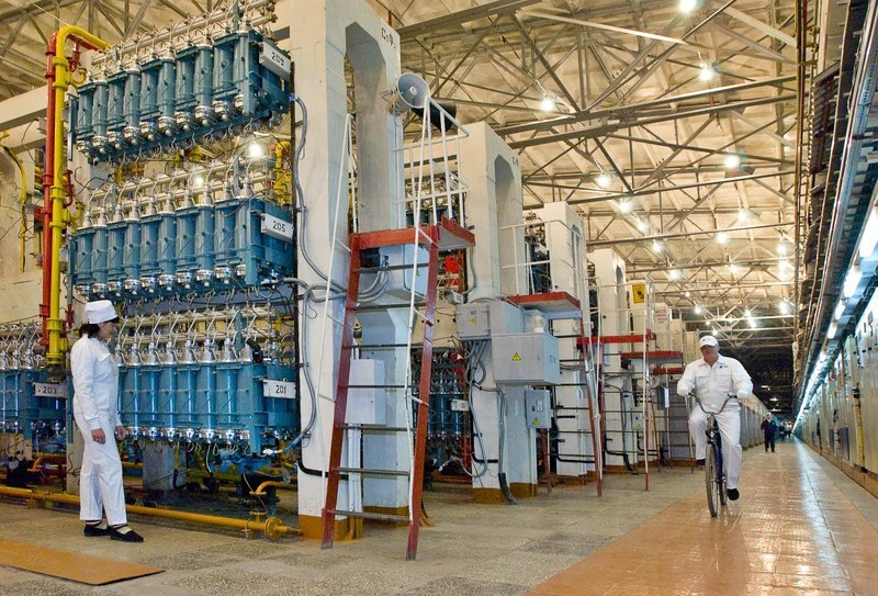 Центрифуга не одна большая, а сотни тысяч небольших, высотой примерно в метр каждая. Они собраны в длинные каскады. Длина цеха с каскадами может достигать километра.