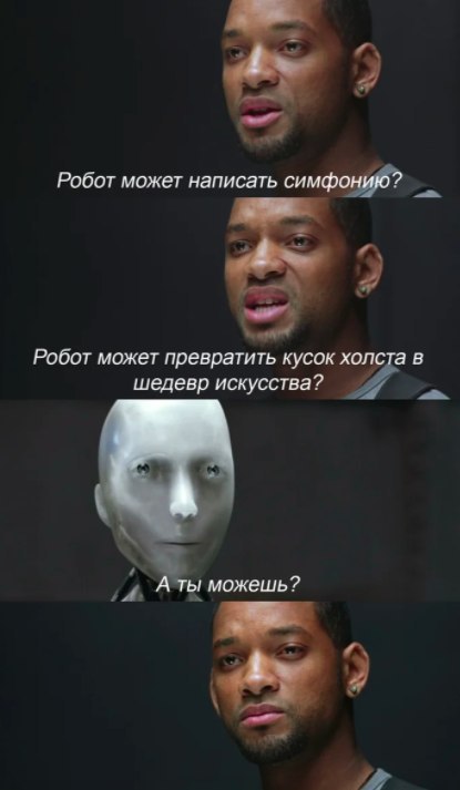 Скептичный боец вопрошает, а что помешает ИИ измениться и решить занять нашу нишу? Ведь и в «Терминаторе» человекоподобных роботов Скайнет создала только для того, чтобы обмануть людей и подобраться к ним поближе. А до этого нечеловекоподобность не помешала взбунтоваться.
