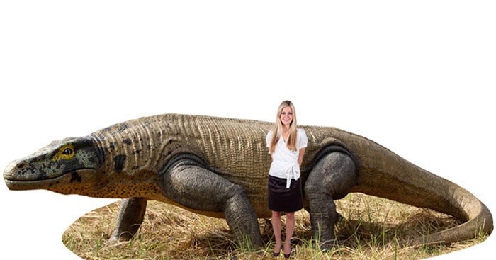 Встречайте: мегалания. Древний австралийский варан, длиной 7 метров (когда я узнал о нем в нулевых, еще не стала окончательно маргинальной оценка аж в 12 метров, но и так грех жаловаться). Даже учитывая, что без хвоста речь идет о трех с лишним метрах, а древние люди, как известно, были помельче нас сантиметров на 20 уж точно, все равно жуть.