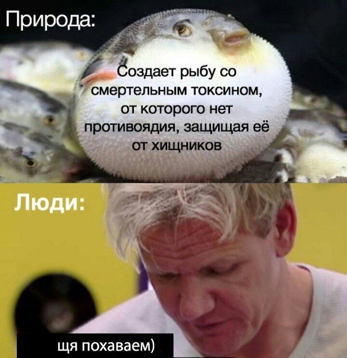 Яд неправильно приготовленной рыбы Фугу блокирует ионные каналы в скелетной мускулатуре, из-за чего импульсы не проходят и человек перестает дышать, находясь в сознании. Жуть!