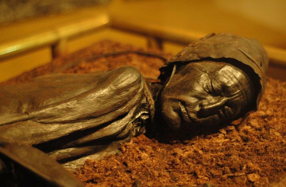 В те времена предки германцев то ли любили делать человеческие жертвоприношения, то ли древние убийцы любили прятать следы своих деяний в месте, куда обычно люди предпочитают не забредать. В любом из вариантов, тела сохранились настолько хорошо, что на шеях видны следы удушения, остатки веревок иногда на шеях находятся, а еще сохранились даже языки, распухшие как положено при этой страшной смерти. (Скорее всего, речь именно о жертвоприношениях, ведь в болотах находят и бедных песиков — а нахрена их убивать, а потом прятать?)
