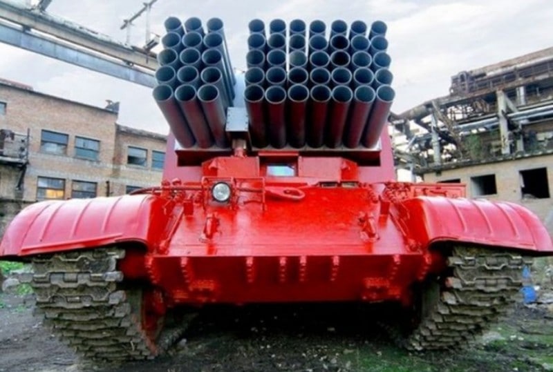 Киевляне, видимо подумали: что вызывает самые страшные пожары? Войсковые многоствольные системы залпового огня. И самые сложные пожары предлагают тушить схожим, но противоположным способом. Обстрелять из 50 стволов очаг пожара снарядами с огнетушительным составом из машины, весом 36 тонн.