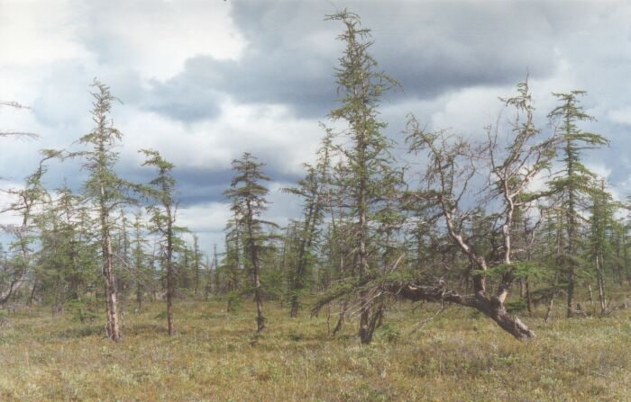 Они спорят между собой за звание самого северного, но вроде как Лукунский все-таки «повыше». То, что там холодно, вы и так догадываетесь. А ветер достигает 50 м/с. Выжить там удается только низеньким (до 7 метров) лиственницам почти без веток. Южанину лесом это назвать, конечно, трудно — слишком уж редкий и низкий. Но я бы посмотрел на вас в таких условиях.