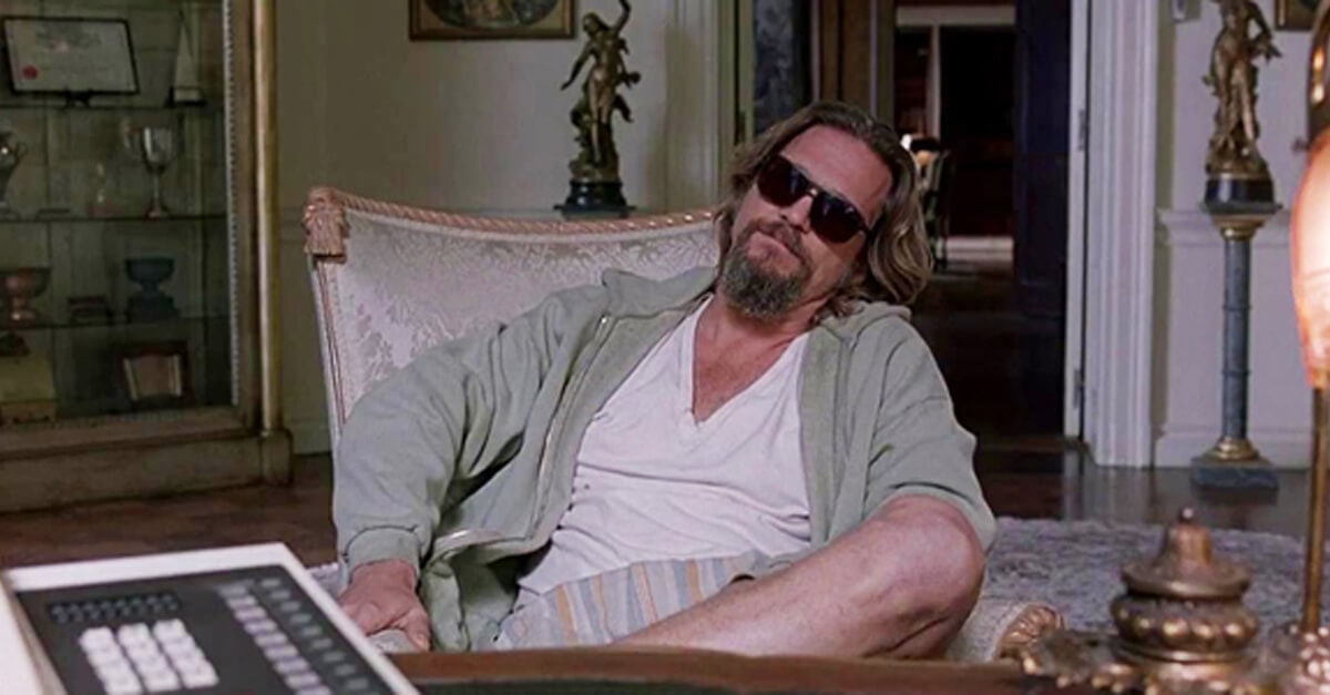 На экране у камина в глубоком кожаном кресле в халате сидит Джеф Бриджес, который играл Чувака (потому что «Ковивак» от Чумакова, классный же каламбур, ну) в «Большом Лебовски» с роксом виски и огромной сигарой, настолько, что на ее счет задумался бы Фрейд (напоминаю, что оба атрибута вредны для здоровья в любых количествах). И говорит такой хриплым голосом, вкалывая себе сам шприц: