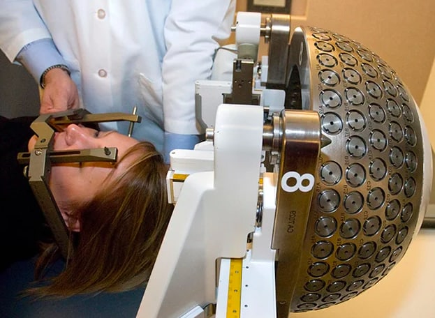 Как нетрудно догадаться, лечит гамма-излучением (радиацией, да-да!). Это дело очень опасное для здоровых частей организма, так что, чтобы избежать проблем, надо очень точно попасть лучами в мишень. Процесс лечения на словах звучит, как пытка из психушек викторианской эпохи, но на самом деле, процедура не такая уж мучительная (анестезия же), да и жизни спасает реально. Итак…