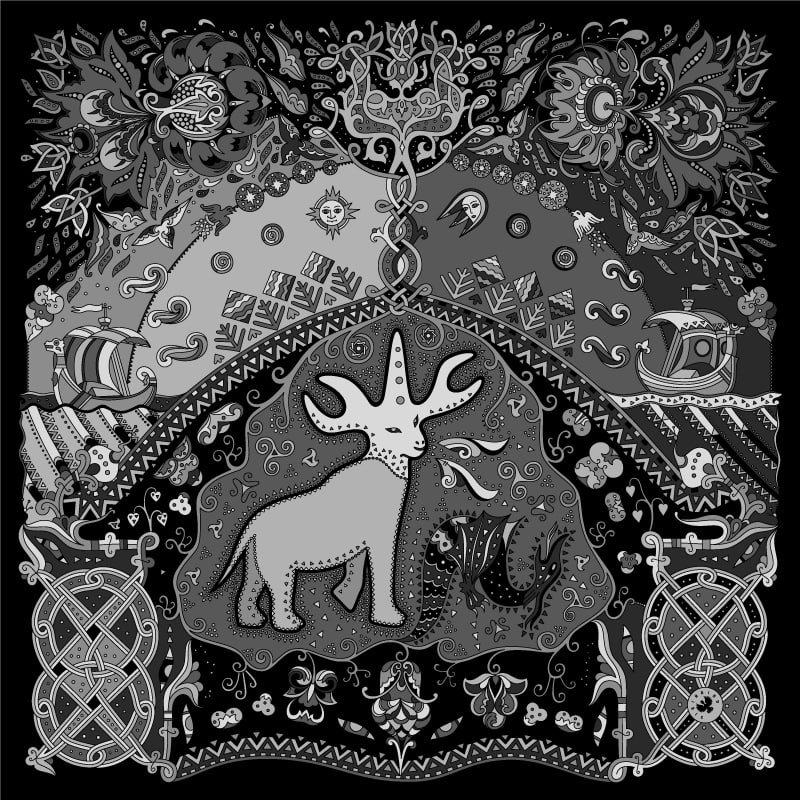 Это чудище из древнерусского фольклора. Парадокс, но про него редко знают, хотя вроде бы вот оно наше, свое, родное. Отличался этот зверь двумя рогами. Обитал под землей. На платке шелковом он был изображен как олень с дополнительным прямым рогом единорога между ветвистыми оленьими. Но не то, что рогов в итоге три, меня смутило. Смутило то, что индрик не похож на мамонта. А должен же!