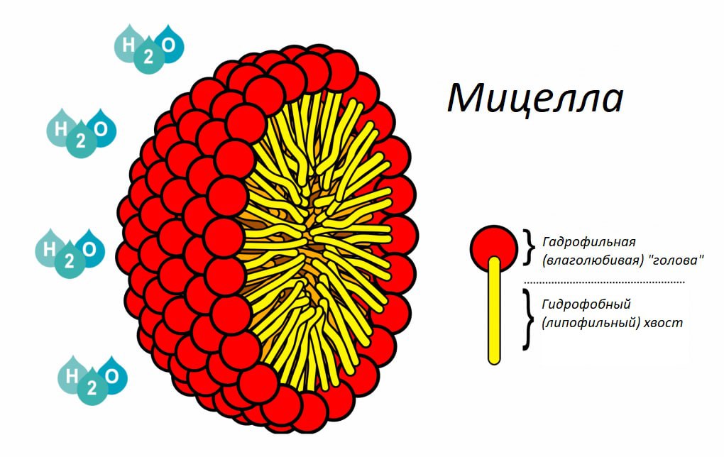 На иллюстрации — мицелла. Не Мирцелла, как неудачливая дочь Серсеи Ланнистер. А микропузырик из мыльных молекул внутри мыльного раствора. Вот для жира самое страшное — попасть в эти щупальца.