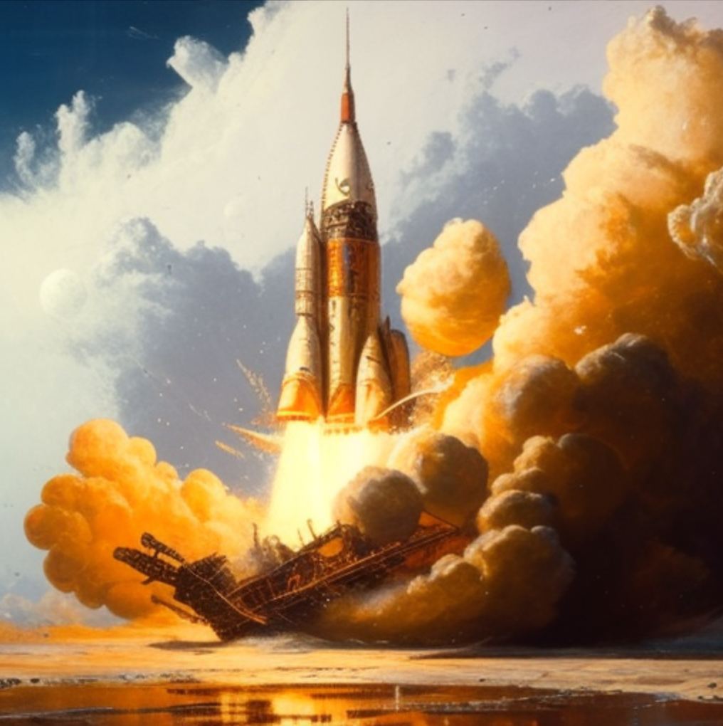 Поэтому с вас требуется узнать, что за ракета. На картинках она совсем не похожа на оригинал, но узнать можно. Задача со звездочкой: угадать хотя бы одного художника. Один — один из первых в истории России. Другой — второй половины 20-го века. Третий — наш современник. Но это чисто угадайка, нейросетка не отразила стили.