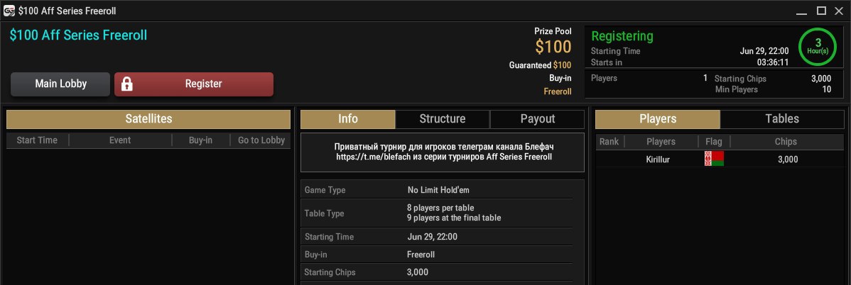 Сегодня в 20:00 пройдёт мой бесплатный турнир с призовым фондом $100 на GGПОКЕРОК