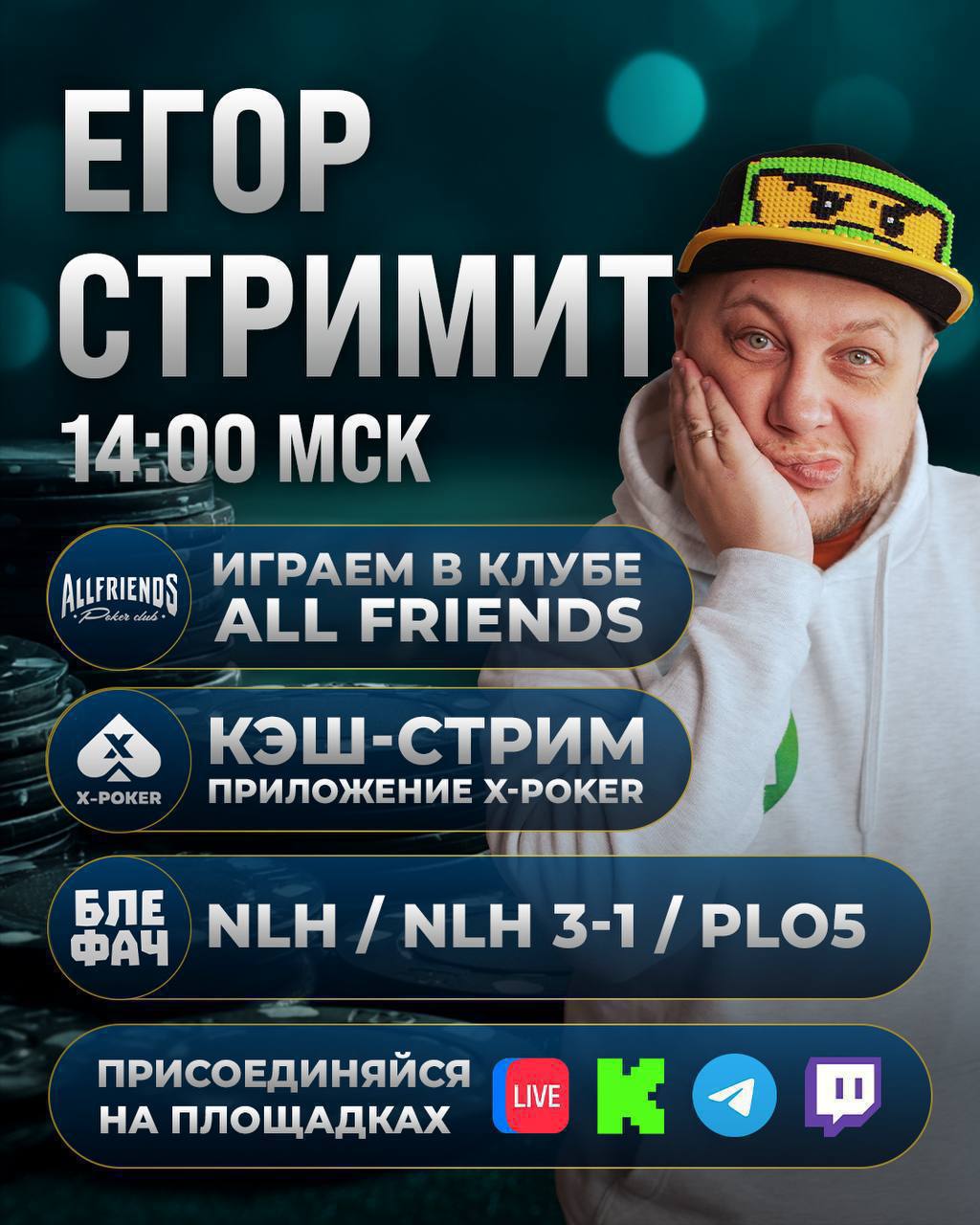 — Отыграй 100 раздач на стриме с Егором и забери весь выигрыш себе!