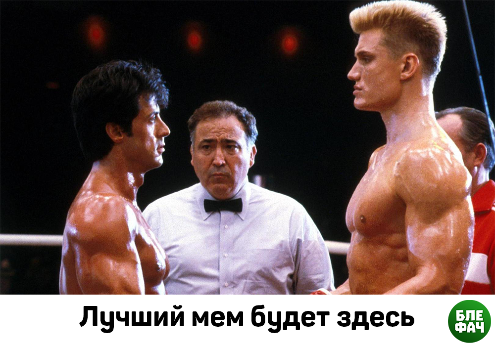 😀 Мутим интерактивчик - очередной конкурс на лучший мем, на этот раз к кадру "Рокки Бальбоа против Ивана Драго" из культового фильма Рокки 4 (1985).