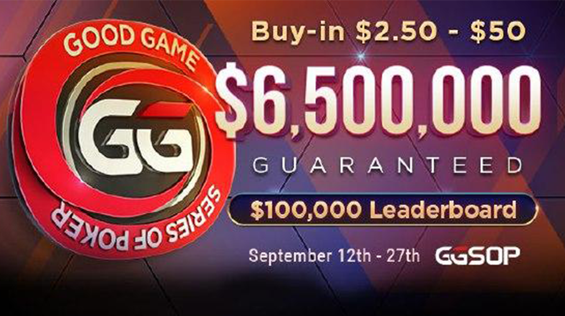1️⃣ С 12 по 27 сентября GGPokerOK проведет серию доступных онлайн турниров GGSOP, которая позволит погрузиться в фантастическую атмосферу Мировой серии покера. Всего в рамках серии будет проведено 54 турнира с бай-ином от $2,50 до $50 и невероятной общей гарантией в $6.500.000! Подробное турнирное расписание серии можно найти по ссылке